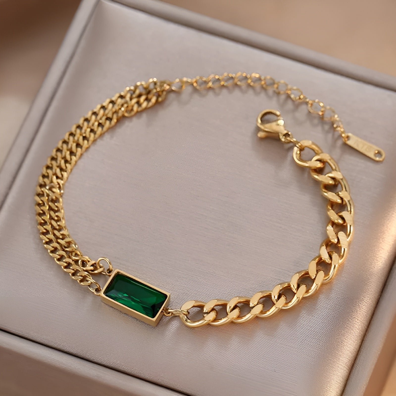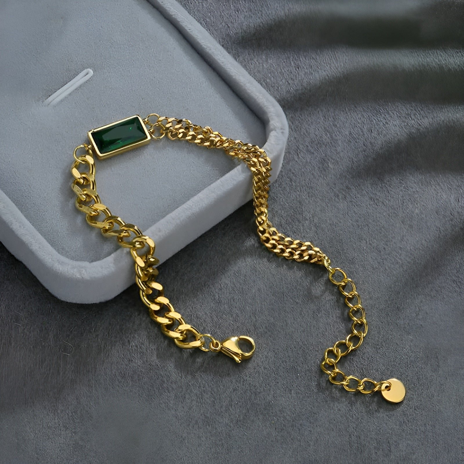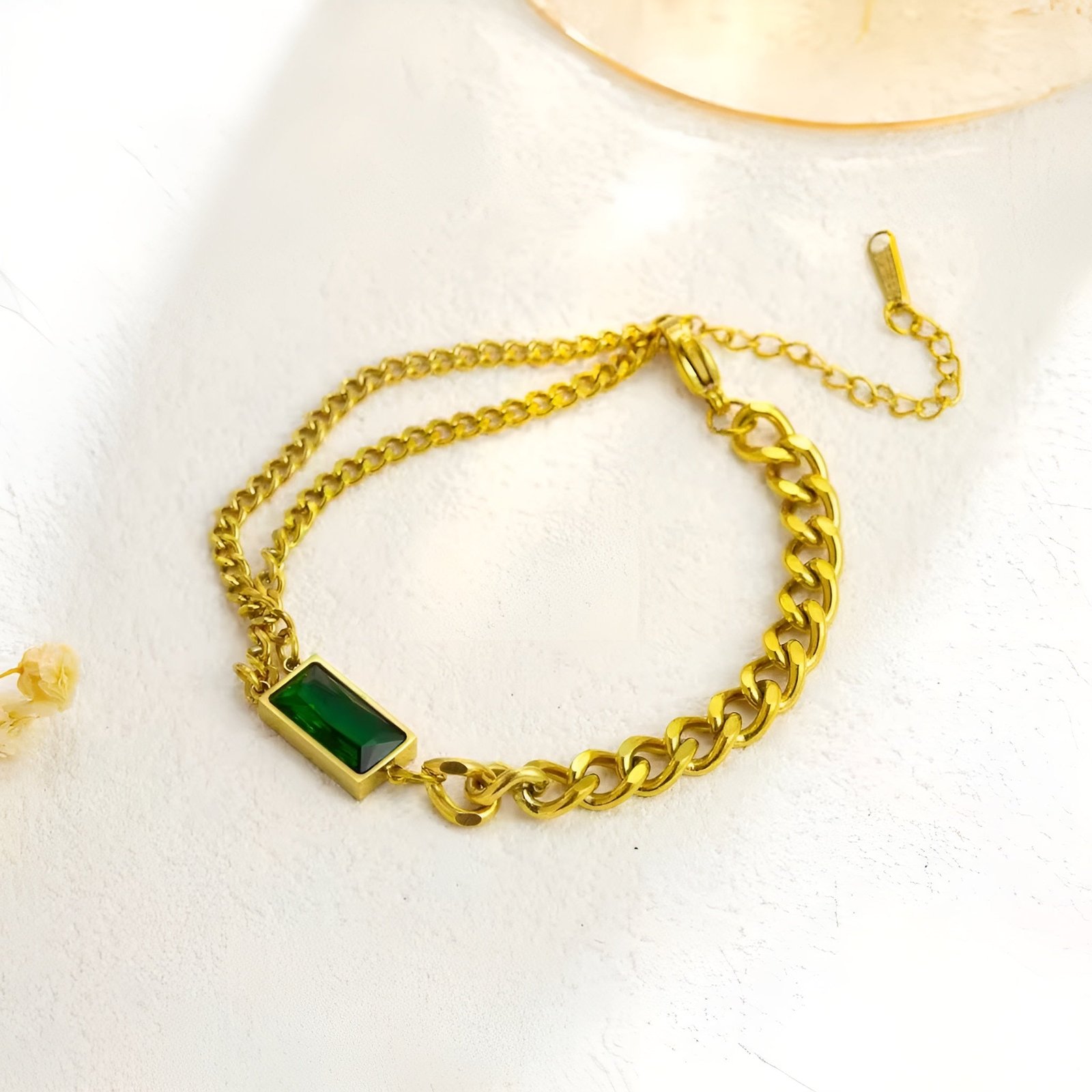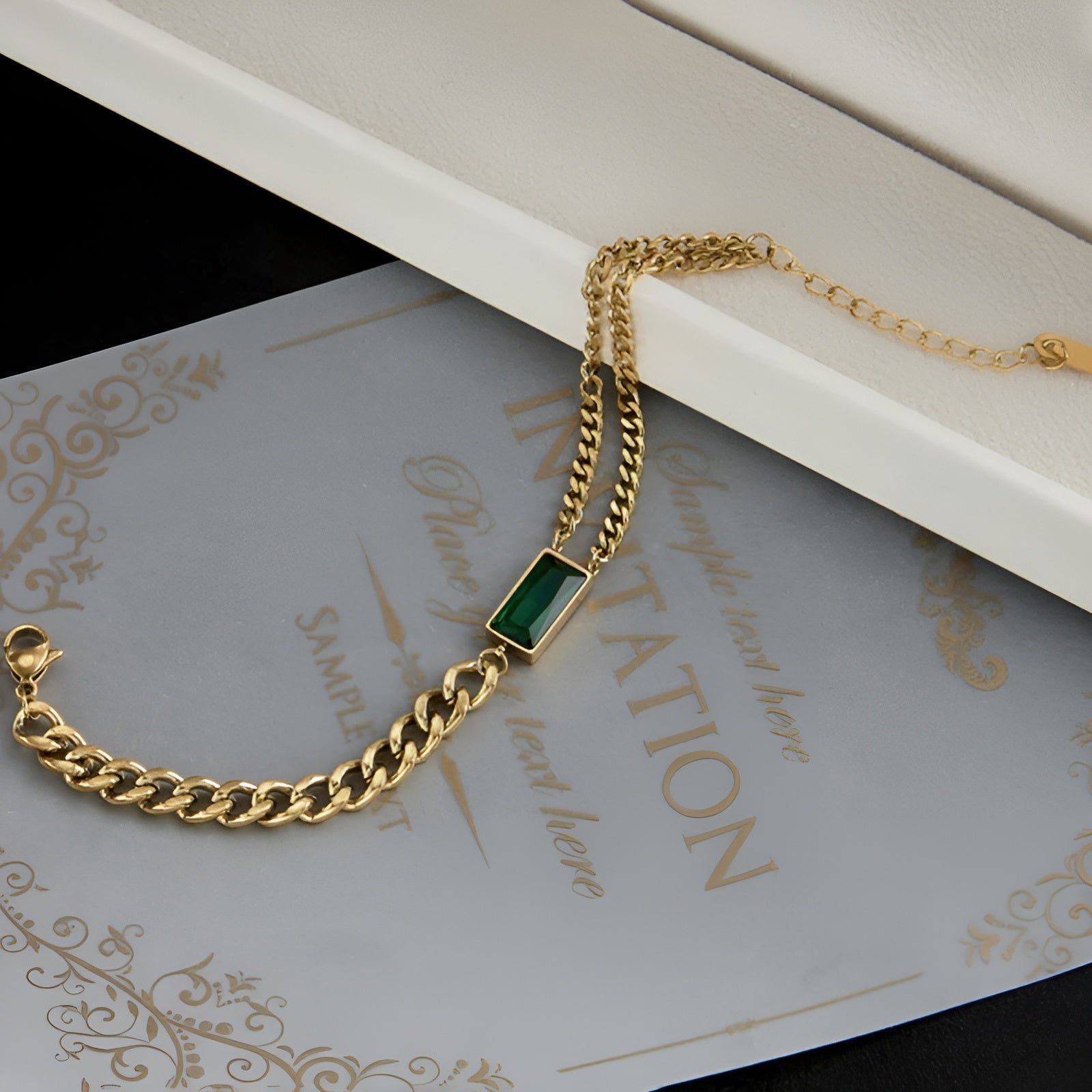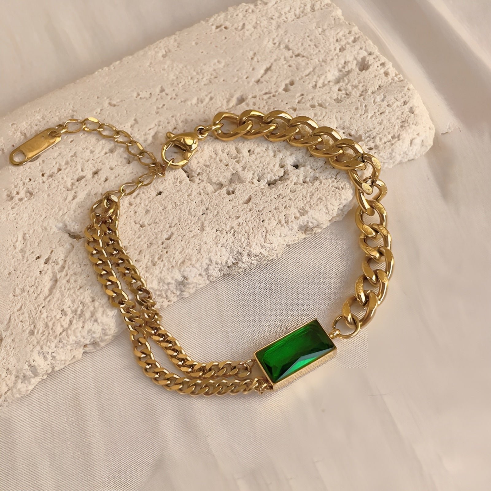 The Emerald Groove Bracelet is a stunning piece of jewelry that exudes sophistication and elegance. Made with exquisite emerald stones, this bracelet is designed to add a touch of luxury to any outfit. Its unique grooved design adds a modern touch while highlighting the natural beauty of the emeralds. Elevate your style with the Emerald Groove Bracelet.