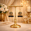 The delicate bead drops add movement and charm, while the golden finish enhances the overall premium appeal. Ideal for weddings, festive events, formal gatherings, and traditional outfits, these jhumkas effortlessly complement both light and dark ensembles.